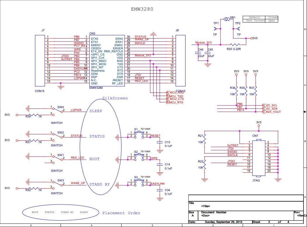 The module assessment tool can provide power modules and DB 9 serial interface, users can directly connect with the PC serial port module, and then evaluation module functions. This board developed for EMW3162 WiFi Module.