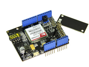 The GPRS (General Packet Radio Service) Shield is a new nonvoice value added service that delivers GSM/GPRS 850/900/1800/1900MHz performance for voice, SMS, Data, and Fax in a small form factor and with low power consumption. It is controlled via AT commands (GSM 07.07 ,07.05 and SIMCOM enhanced AT Commands), and fully compatible with Seeeduino/Arduino and Mega. The GPRS Shield has 12 GPIOs 2 PWMs and 1 ADC(They are all 2V8 logic).