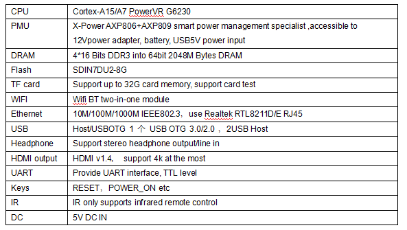 A80 Hummingbrid H8 is a mini board based on A80, there are two USB hosts, an 3.0 OTG, a Gigabit Ethernet , a WIFI/BT4.0 as well as line in and HDMI HD video output besides VGA output. It has all the basic functions of a PC when connect TV and keyboard, such as preadsheets, word processing,play games and HD videos etc.