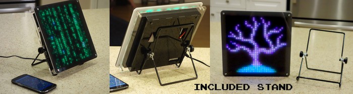 Simply select the art from your Android, PC, Mac, or Raspberry Pi and download to PIXEL. After that, PIXEL runs in stand alone mode with no device connection necessary. Or leave your device connected and use PIXEL in interactive mode for things like Twitter feeds, interactive animations using the optional proximity sensor, camera phone feeds, and on the fly pixel art creation.