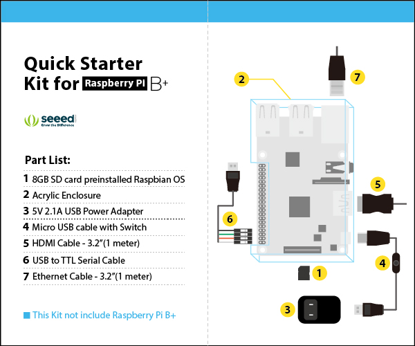 Notice: Quick Starter Kit for Raspberry Pi does not include Raspberry Pi B+